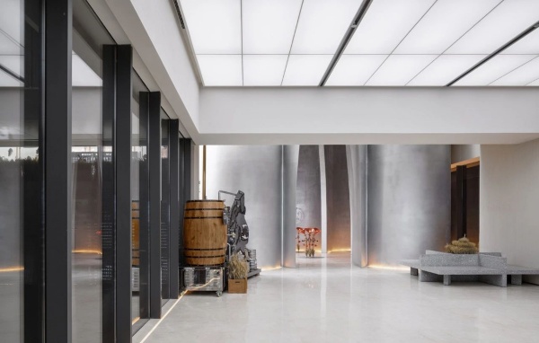 西德尼石材展廳位于福州市晉安區(qū)。作為石材展廳項目,設計不僅需展示不同石材的色澤、紋理和質(zhì)地特點;更聚焦于石質(zhì)材質(zhì)的肌理表現(xiàn)而激發(fā)參觀者的視覺聯(lián)想。因此,設計團隊創(chuàng)作在展廳界面、元素形態(tài)、色調(diào)搭配以及配光等方面都嘗試突破以往石材展示的固有形式:由靈感激發(fā)的設計創(chuàng)意揉合現(xiàn)代藝術的編排形式,將“石”的不同性格感性化地表露出來。